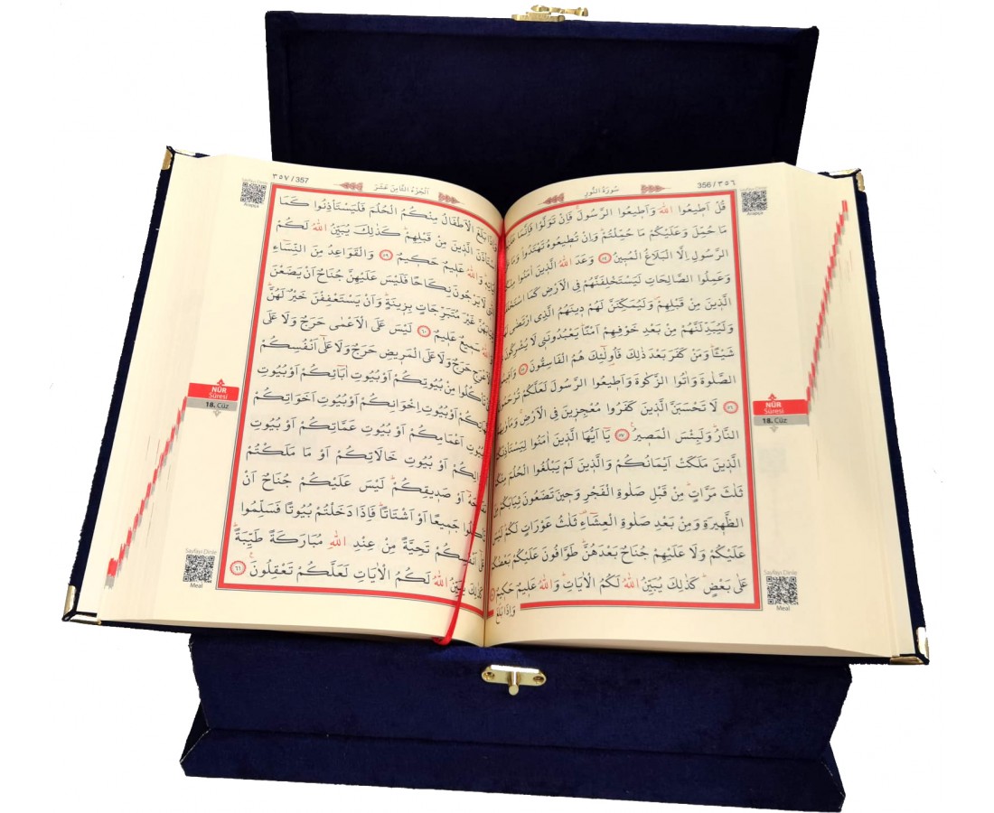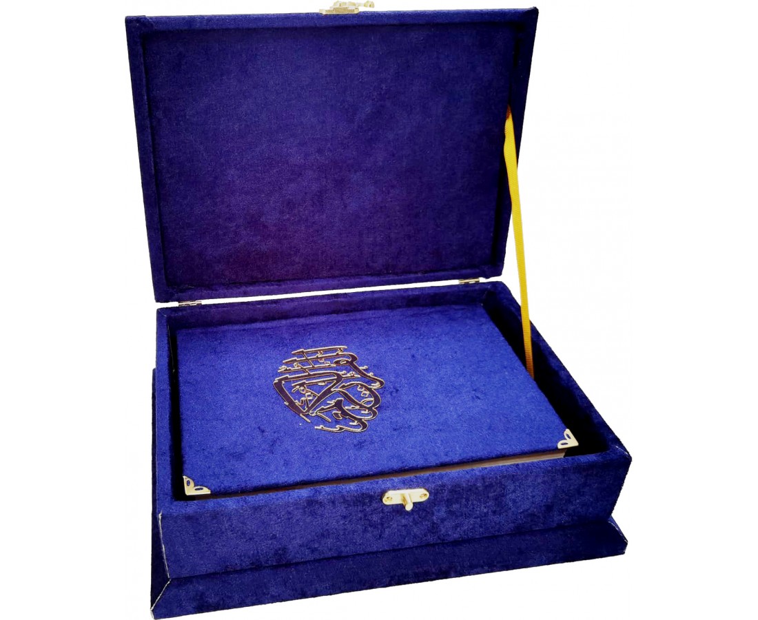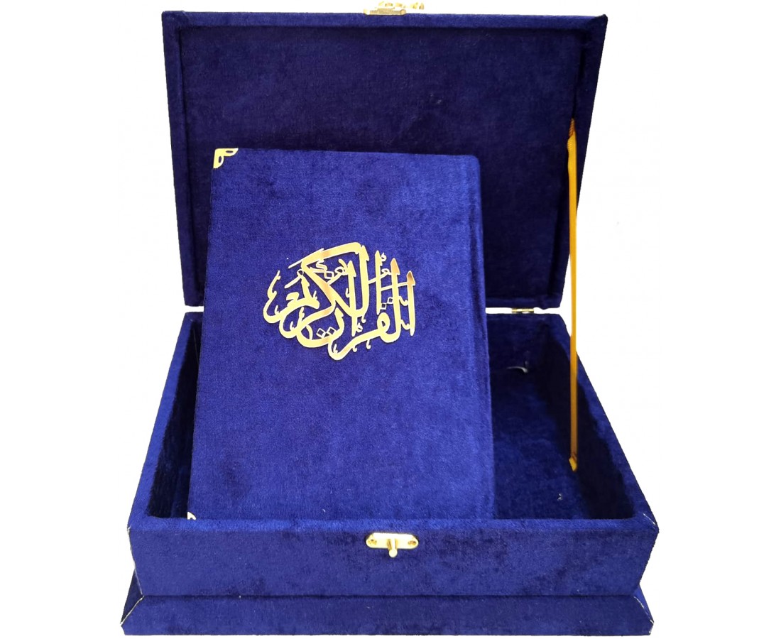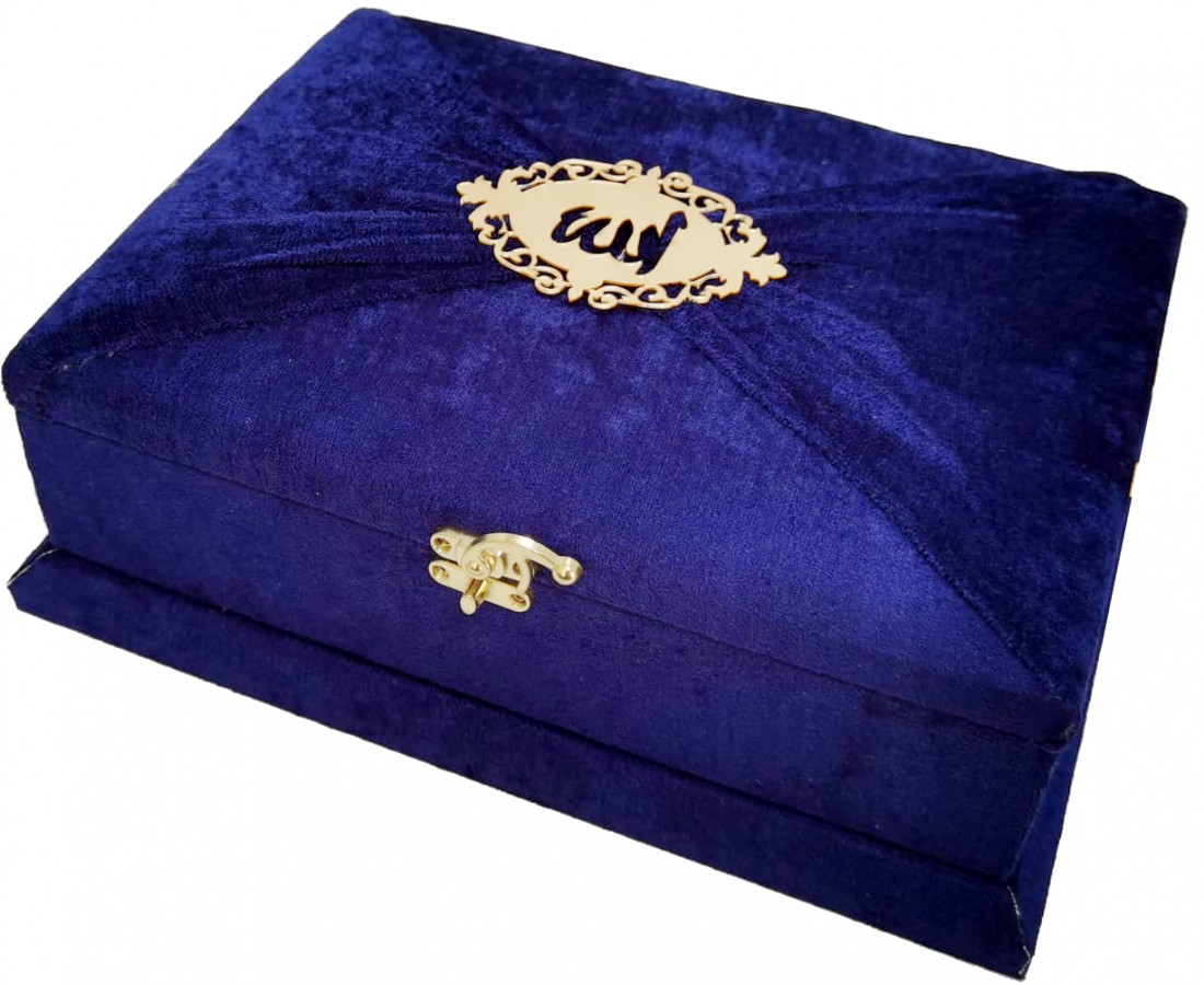 279 LACİVERT - MÜHÜRLÜ ORTA BOY SÜNGERLİ HEDİYELİK SANDIKLI KURAN-I KERİM
